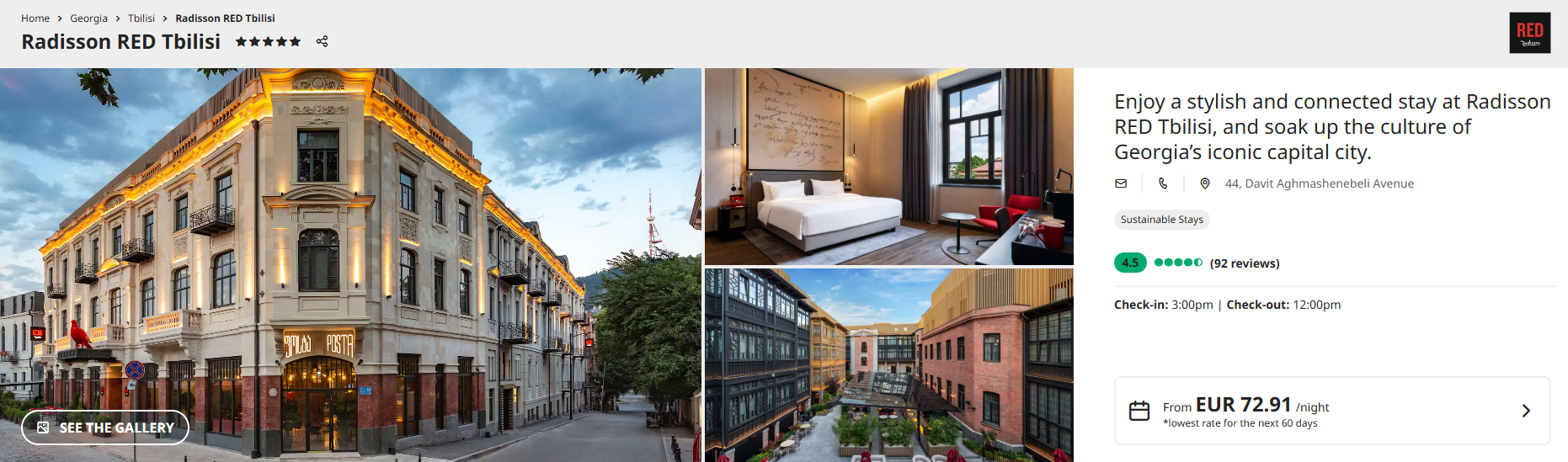 조지아의 Radisson Red Tbilish 호텔에 묵게 되었는데요.