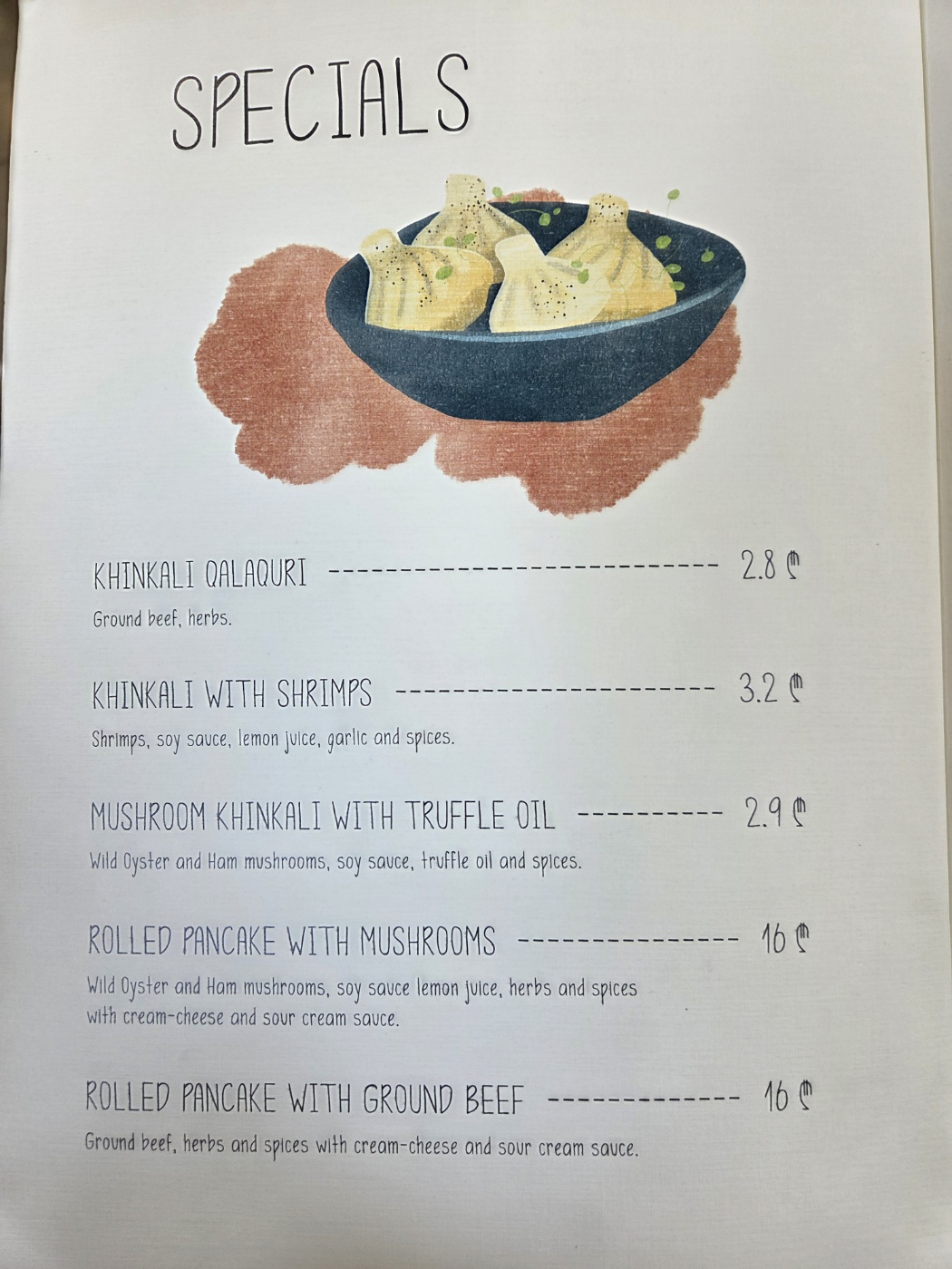 조지아 전통음식인 킨깔리등이 다 있습니다.