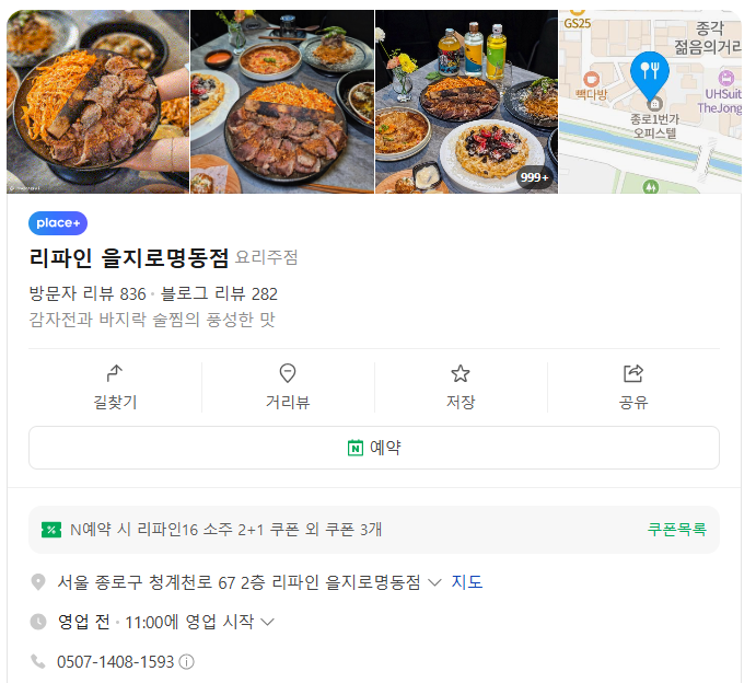 오늘은 을지로에 위치한 리파인에 다녀와씃ㅂ니다.