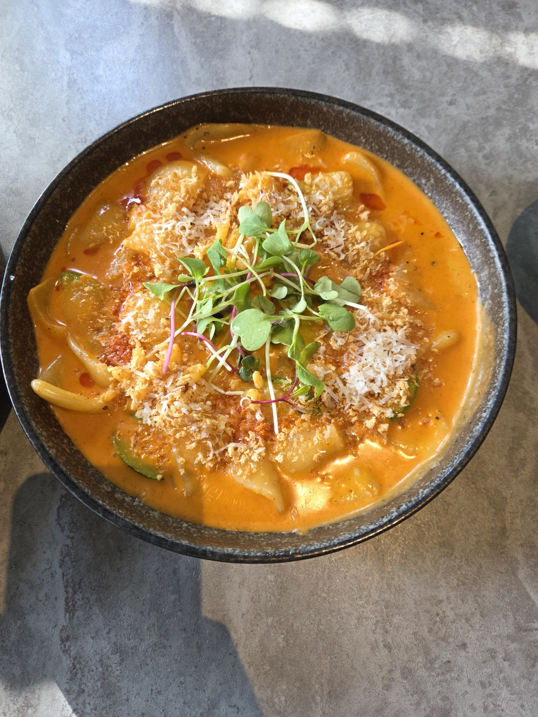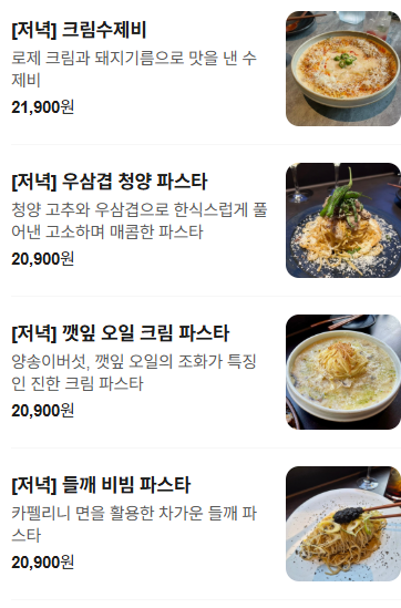 그래서 깻잎 오일 파스타와 크림 수제비를 시켜봤는데요.