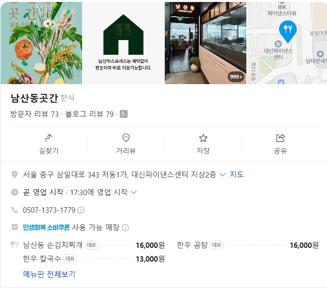 오늘 점심에는 명동에 맛집이라는 남산동곳간에 다녀왔습니다.