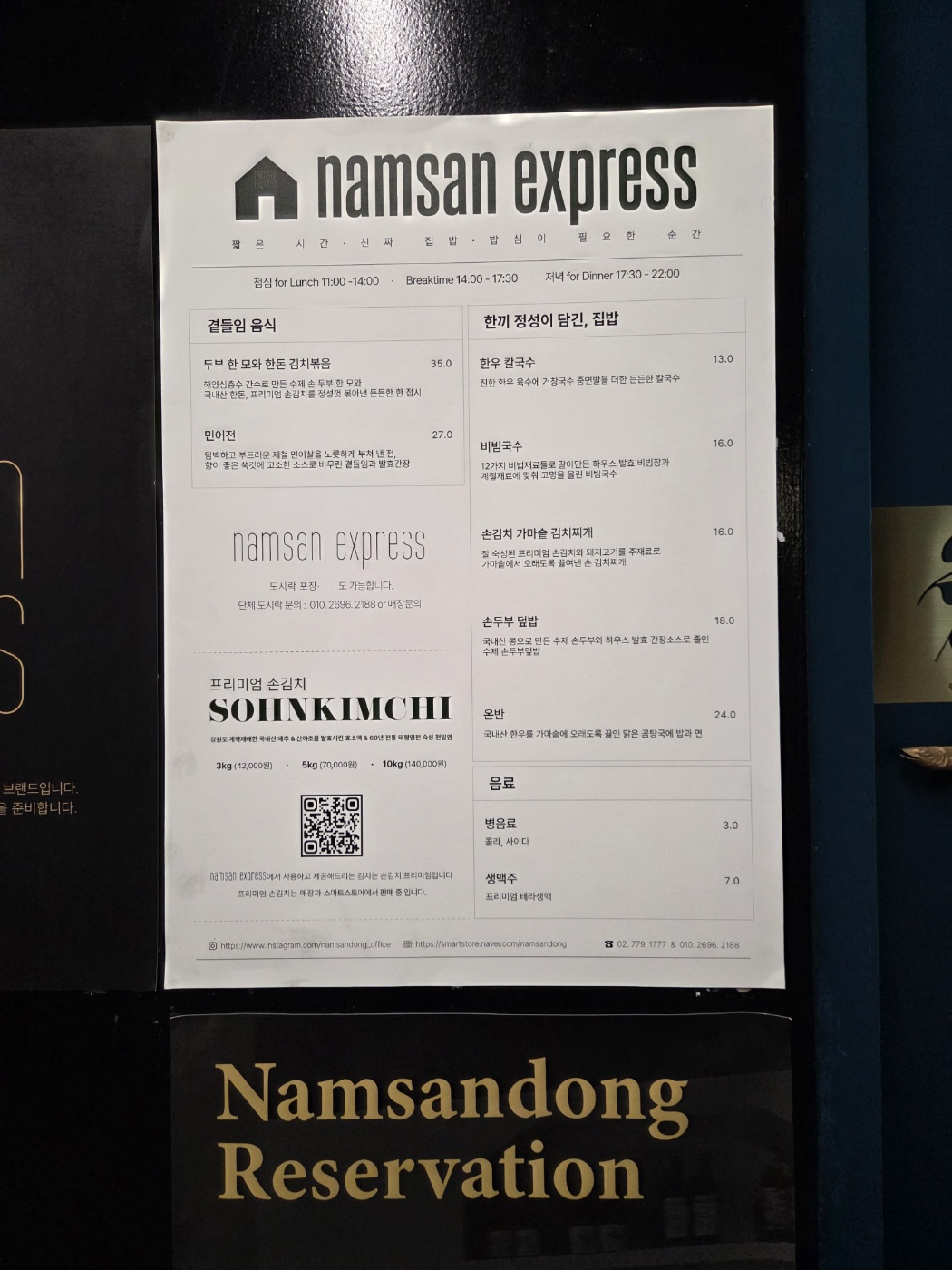 메뉴는 두부 한모와 한돈 김치 볶음, 칼국수, 김치찌개, 온반, 덮밥 등이 있구요.