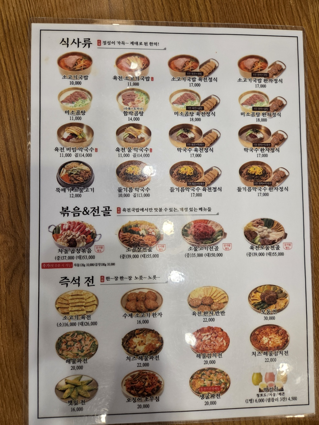 메뉴는 아래와 같구요. 육전이 들어가 있는 소고기국밥이 가장 메인입니다.
