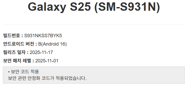 갤럭시 S25시리즈의 업데이트가 진행되었습니다.