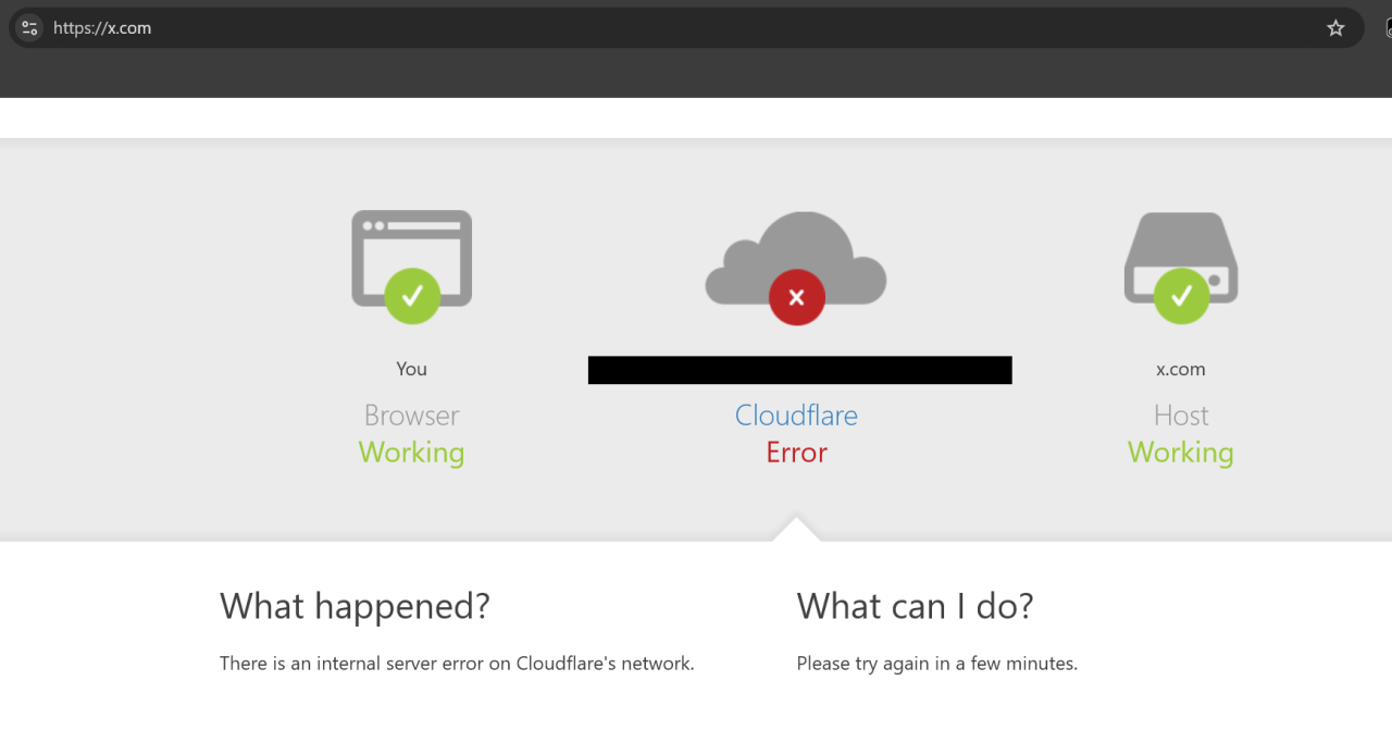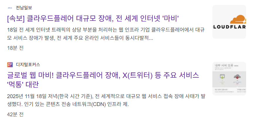 현재 클라우드플레어가 장애가 난 상황입니다.