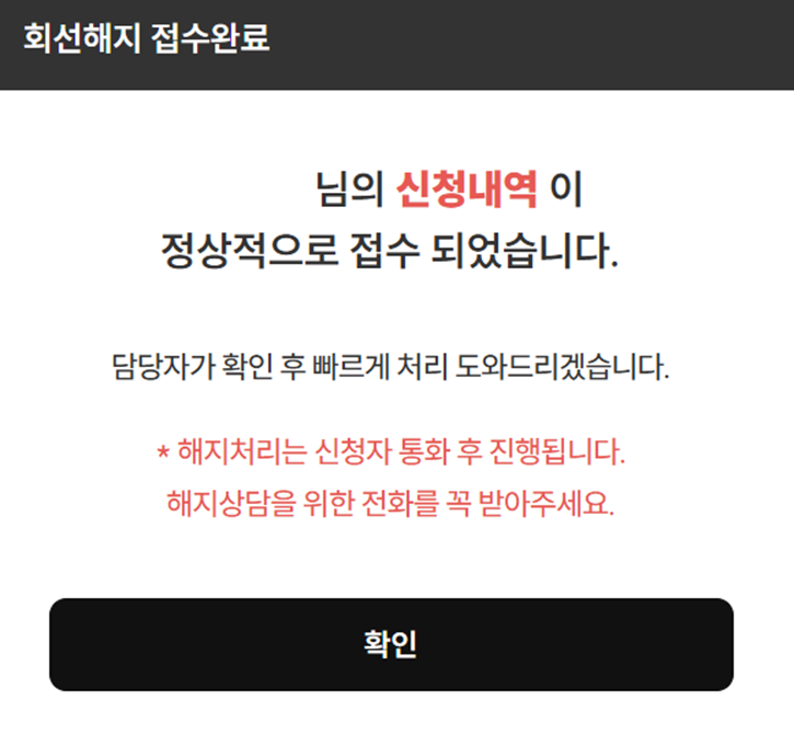 본인 인증 후에 상담사 전화 후 해지가 된다고 합니다.