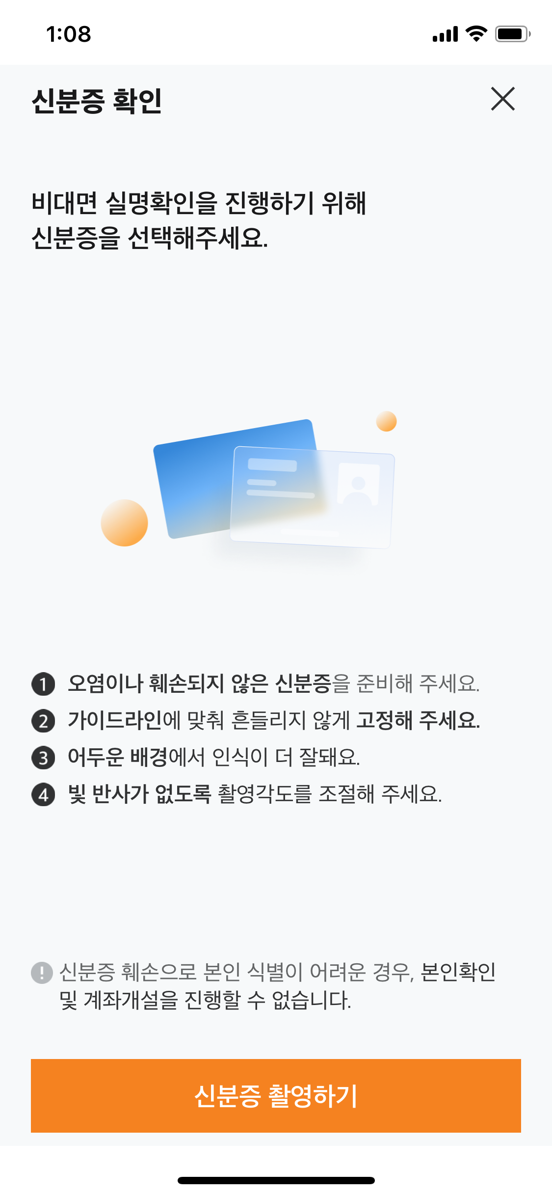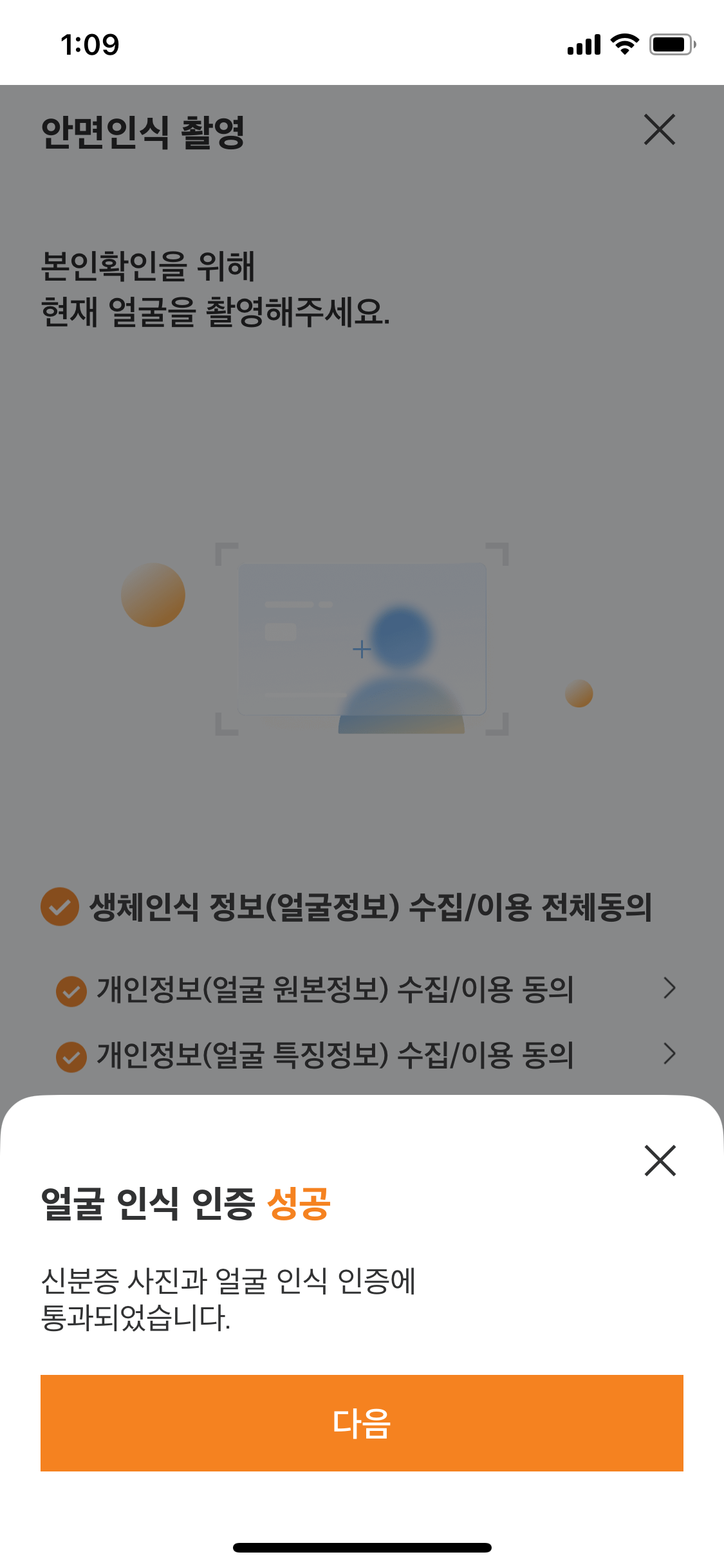 신분증 확인과 함께 생체정보를 인식하게 됩니다.