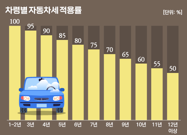- 차령(연식) 경감: 신차 등록 후 3년 차부터 매년 5%씩 감면되며, 최대 50%(12년 차 이상)까지 할인됩니다.