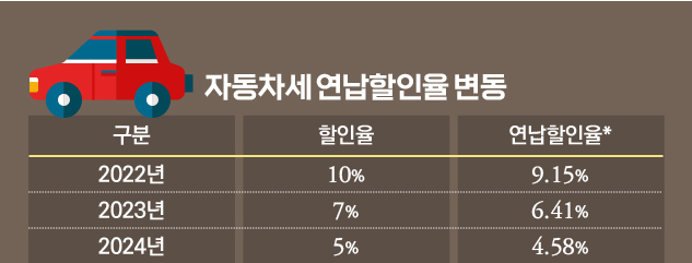 이에 따라 정부는 2020년 법개정을 통해 10%이던 연납할인율을 2023년에 7%, 2024년에는 5%로 낮췄습니다.