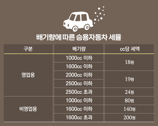 - 자동차세: 1,600cc \times 140원 = 224,000원