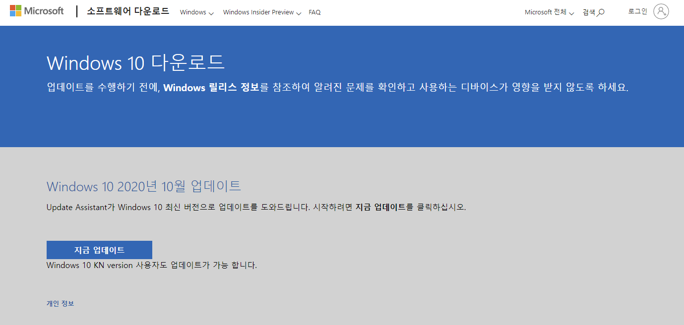 윈도우 10 업데이트 도구 수동으로 하기