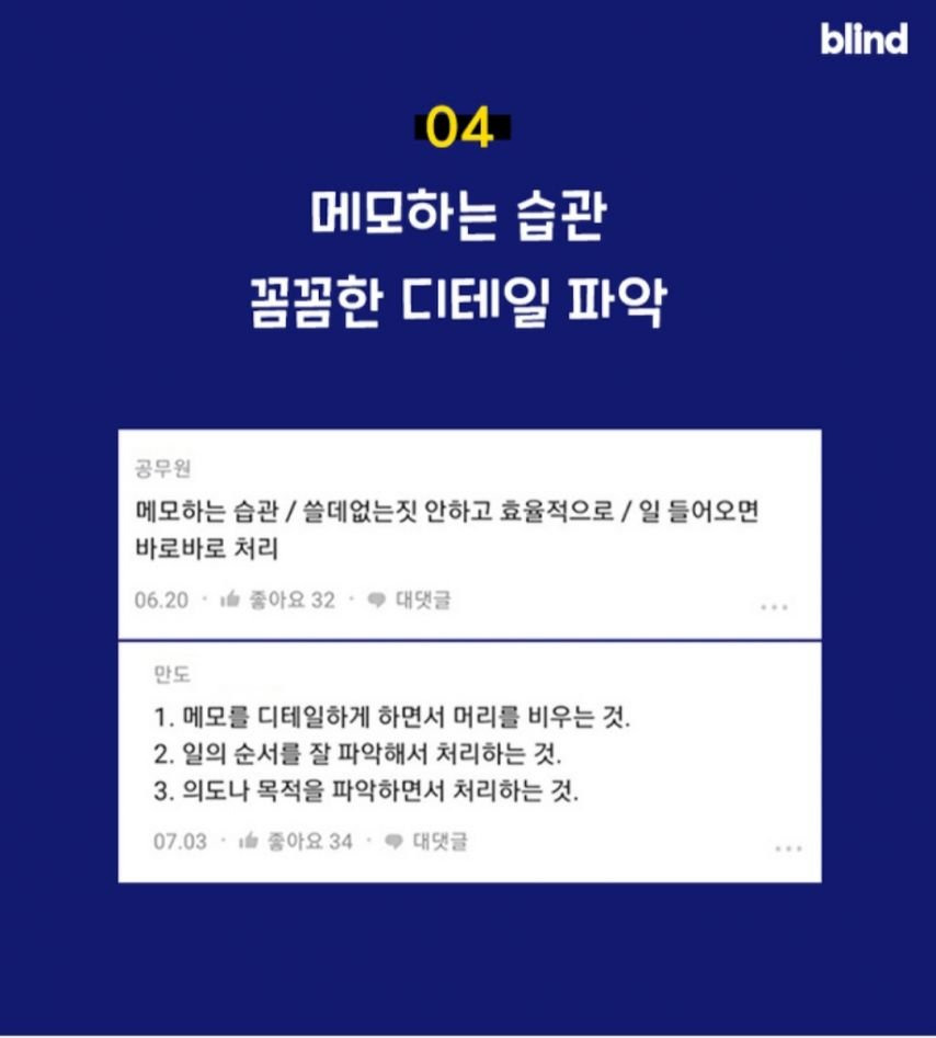 핵심 - 자신의 기억력을 맹신하기보다 철저한 메모를 통해 실수를 줄이고 효율적으로 일합니다.