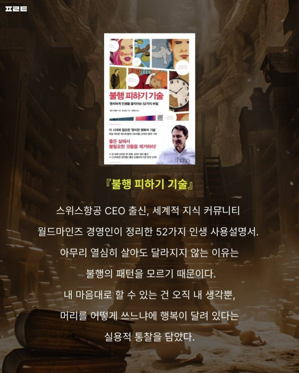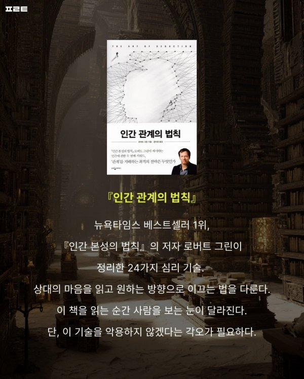 살면서 누구나 한 번쯤 품어봤을 솔직하고도 발칙한 욕망들입니다. 이런 인간의 본능과 심리 기저를 꿰뚫어 보는 종합 베스트셀러 1위 작가의 서재에 숨겨진 6권의 책을 인터넷에 잘 정리한 것이 있어서 공유드립니다.