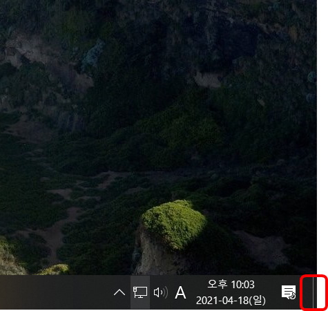 윈도우 우측 하단에 아주 작은 부분을 누르시면 바로 바탕화면으로 가게 됩니다.