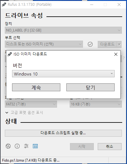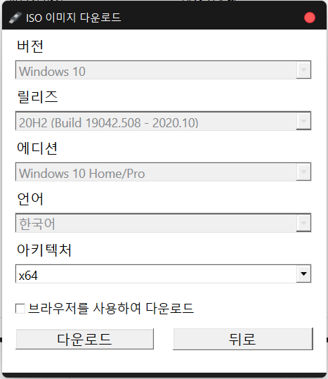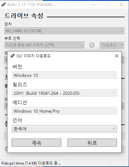 다운로드를 누르면 잠깐 백그라운드에서 프로그램이 실행 후 아래처럼 윈도우 10버전이 나오는데요.