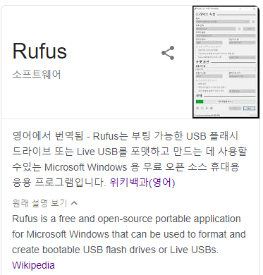 Rufus는 부팅가능한 USB를 만들 수 있는 오픈소스 프로그램입니다.