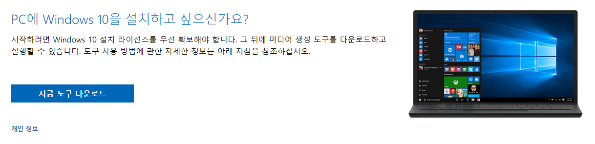 MS홈페이지의 다운로드 툴을 통해서 최신버전의 윈도우 10 설치 프로그램 다운 및 USB 제작이 가능합니다.