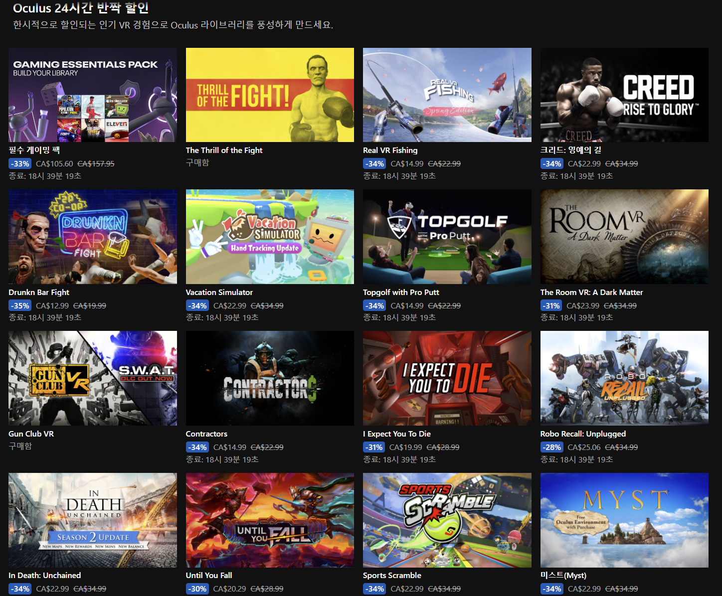 현재 내일 있을 오큘러스 퀘스트2 이벤트로 24시간 세일을 하고 있습니다.
