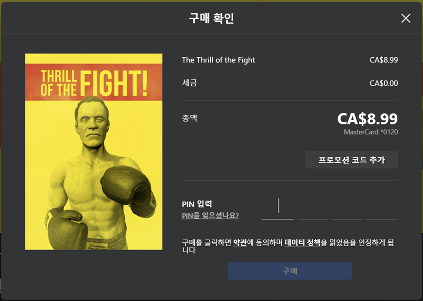 뜨는 창에서 Pin 번호를 입력하시면 구매가 됩니다.