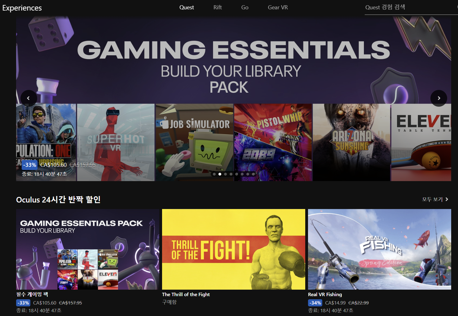 특히 오큘러스 퀘스트의 경우 세일을 잘 하지 않으니, 이번처럼 40%의 할인은 사실 먼저 구매하시고