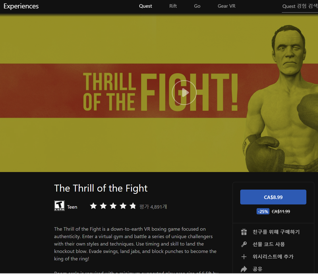 인터넷 평으로는 The Thrill of the Fight 그리고 필수 게이밍 팩이 젤 좋다고 하는데요.